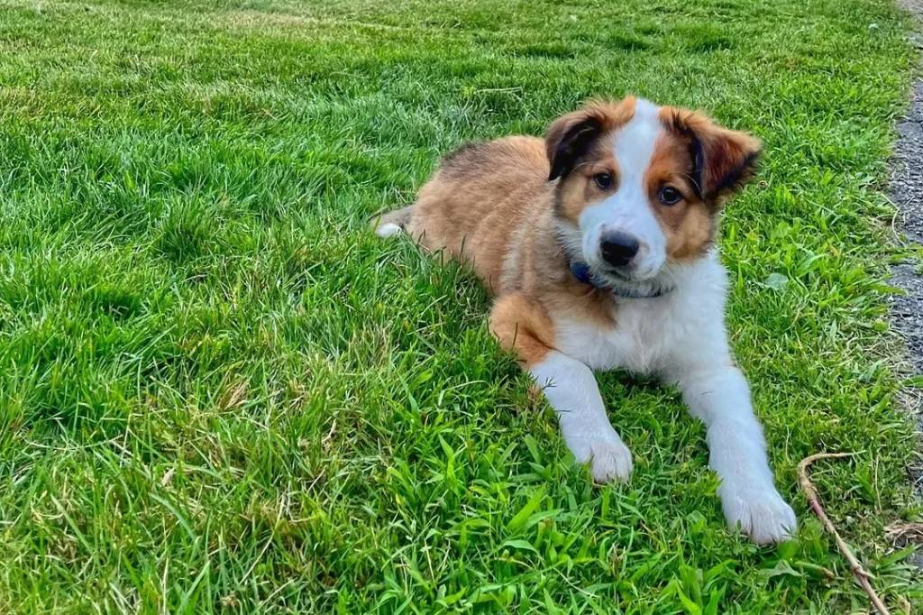 Un Berger Anglais portant un collier autour du cou et regardant vers la caméra