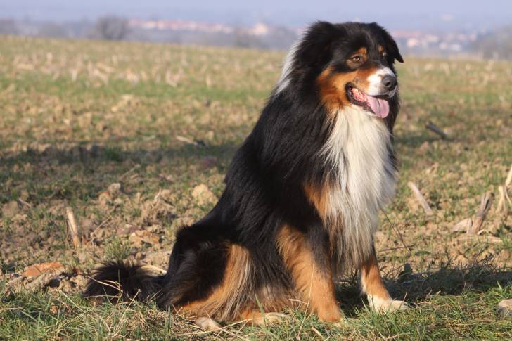 Un Berger Australien assis dans un champ