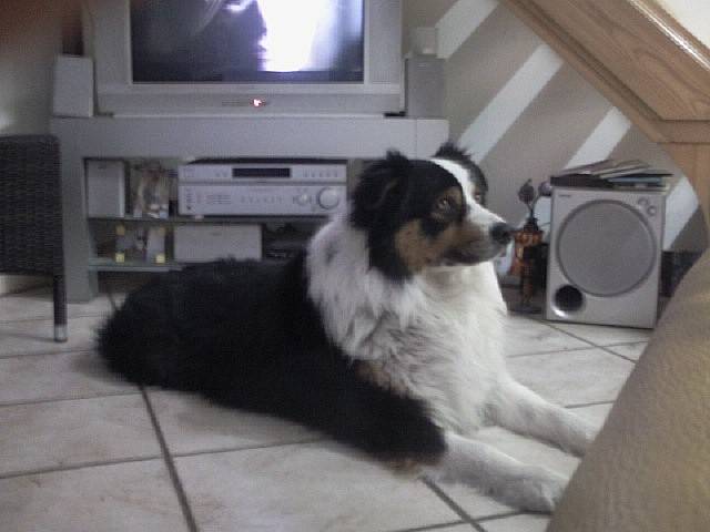 Un chiot perplexe en entendant d'autres chiens aboyer