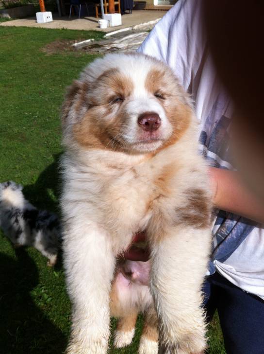 Jazz beau pitit berger australien de robe rouge merle de 6 mois maintenant comme son frère Juke.