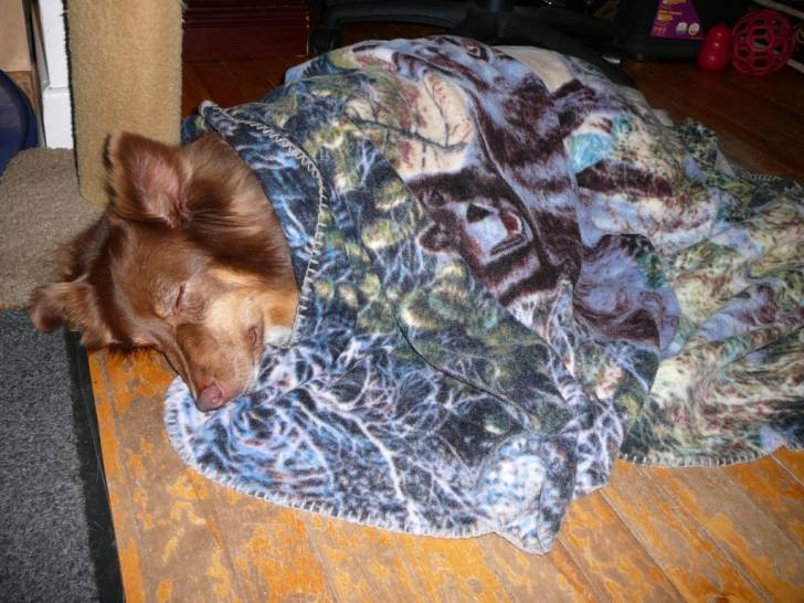 Lady qui fait un beau dodo avec sa doudou de loup.