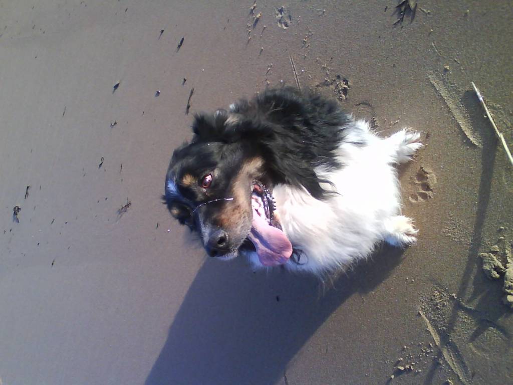 Les vacances à la plage d'un chiot Berger Australien