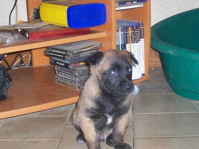 voila cette après midi j'ai récupère un chiot malinois de presque 2 mois sa mère et morte et elle n'avait pas le courage de le gardé