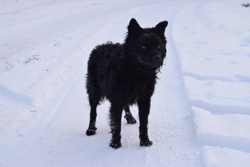 Quatre chiots Berger Croate partagent paisiblement leur repas