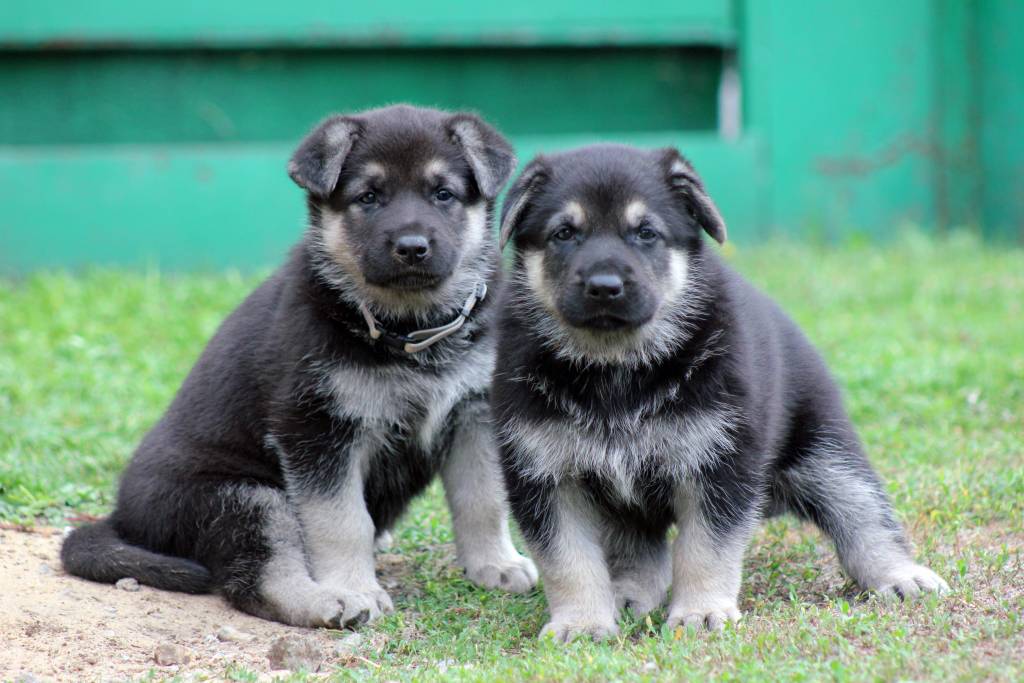 Des chiots de berger d'Europe de l'Est à l'écoute de leur maître