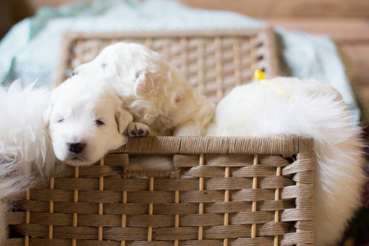 Une femelle Berger de Maremme-Abruzzes allaite ses chiots