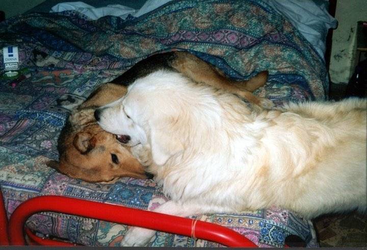 Une femelle Berger de Maremme-Abruzzes allaite ses chiots