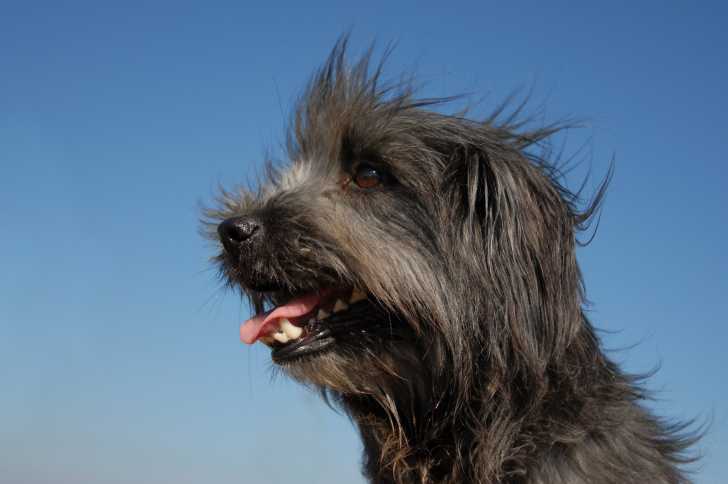 Vue aérienne d'un Berger des Pyrénées guidant un troupeau de brebis