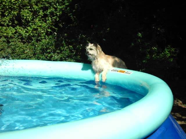 Toujours perchée..........mais pour participer aux jeux de piscine !!!