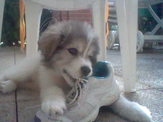 Un chiot Labrit qui n'arrête pas de se rouler dans l'herbe