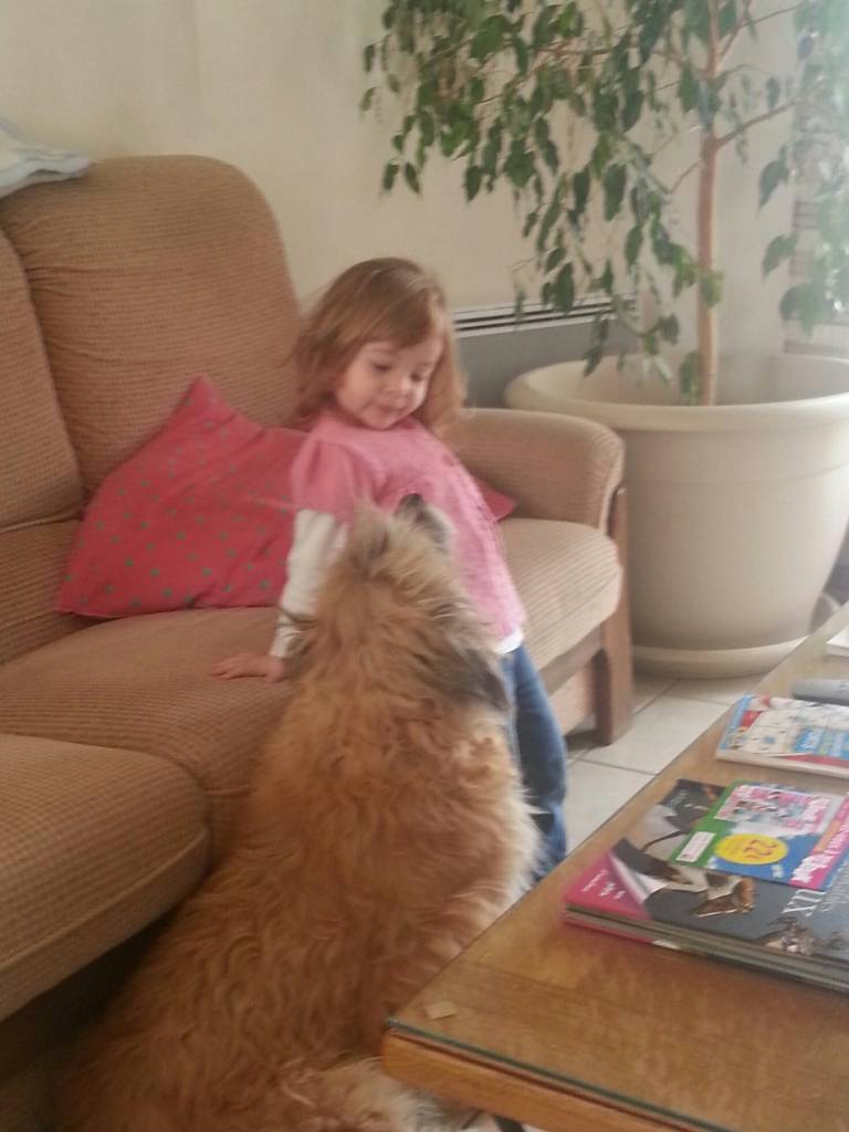 Un chiot Labrit qui n'arrête pas de se rouler dans l'herbe