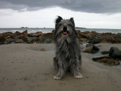 Un chiot Labrit qui n'arrête pas de se rouler dans l'herbe