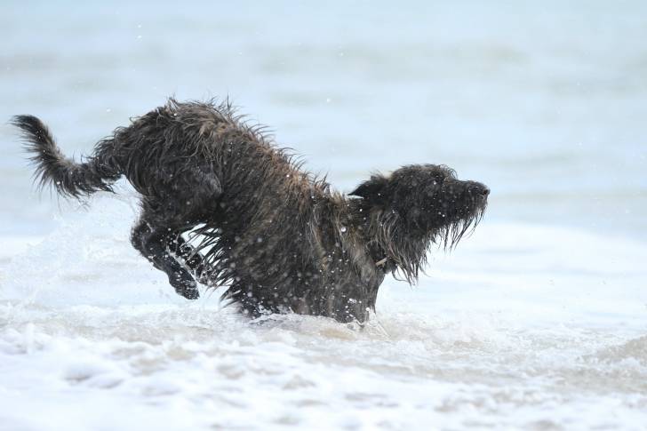 Une maman Berger Picard et ses chiots explorent un vaste jardin