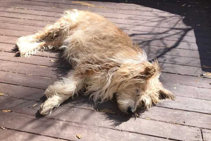Une maman Berger Picard et ses chiots explorent un vaste jardin