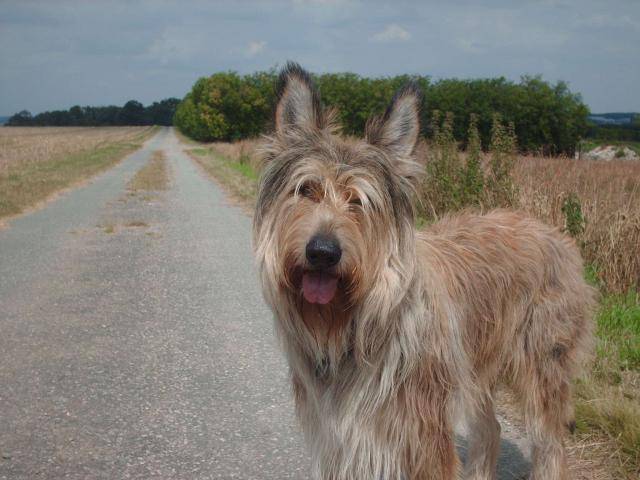 Une maman Berger Picard et ses chiots explorent un vaste jardin