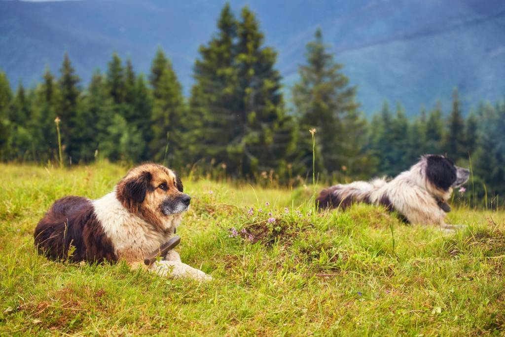 Une chienne Berger Roumain de Mioritza veille au grain sur ses chiots