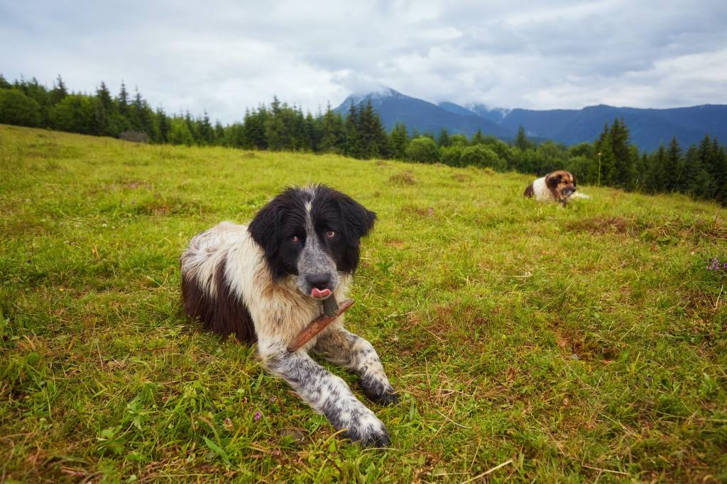 Une chienne Berger Roumain de Mioritza veille au grain sur ses chiots