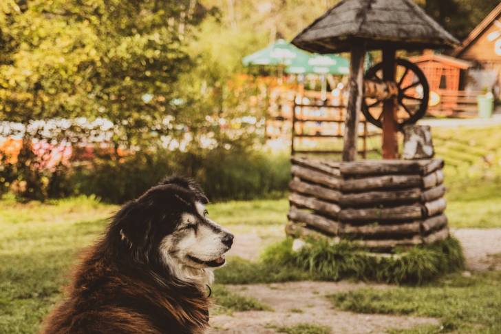Un Berger Roumain des Carpathes perturbé par une tondeuse alors qu'il monte la garde