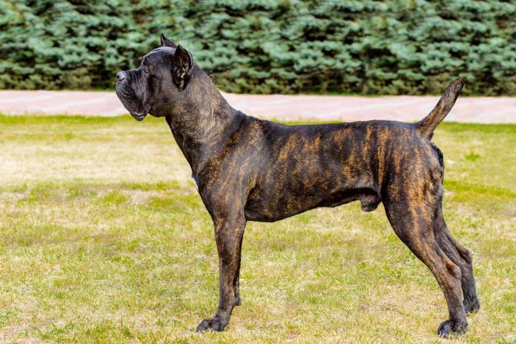 Un Blue Blood Cane Corso debout sur une pelouse verdoyante