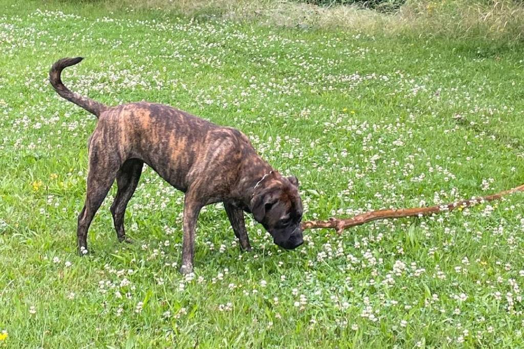 Un Boerboel reniflant le sol