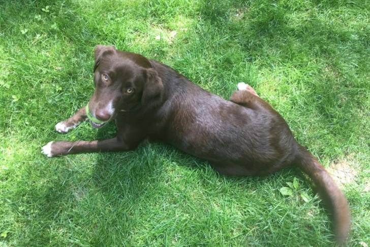 Un Borador allongé sur une surface gazonnée