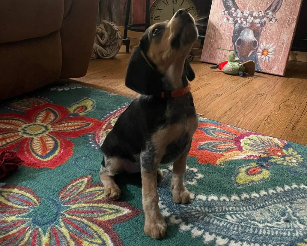 Un Border Beagle est intrigué par des personnes faisant du yoga