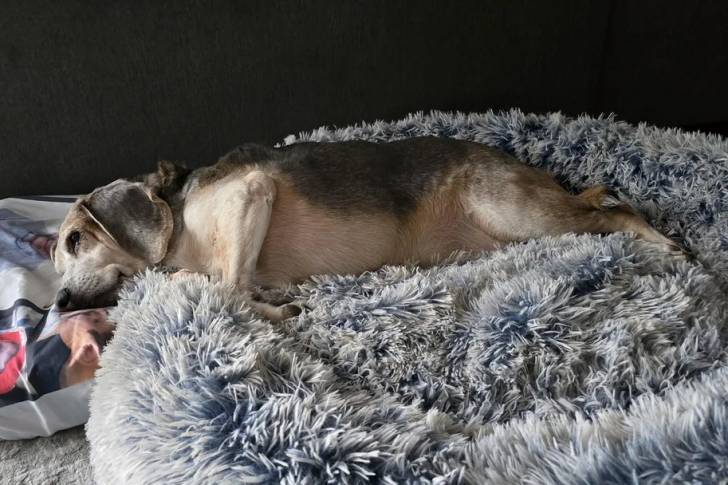 Un Border Beagle est intrigué par des personnes faisant du yoga