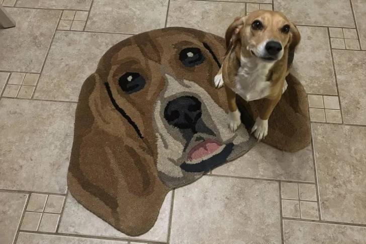 Un Border Beagle assis sur un sol carrelé et semblant détendu