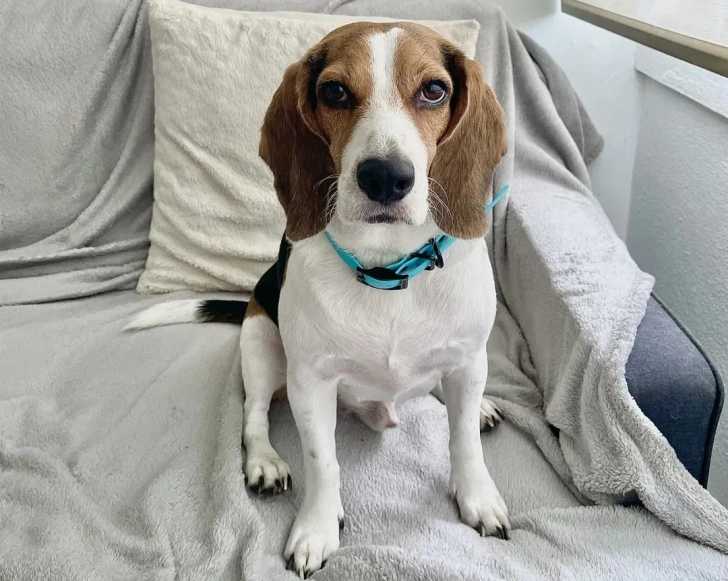 Un Border Beagle est intrigué par des personnes faisant du yoga