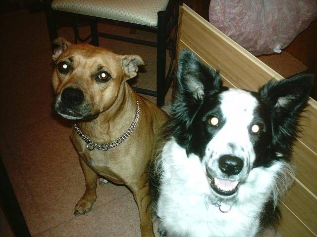 Pryska (Am'Staff) et Charly (Border Collie)