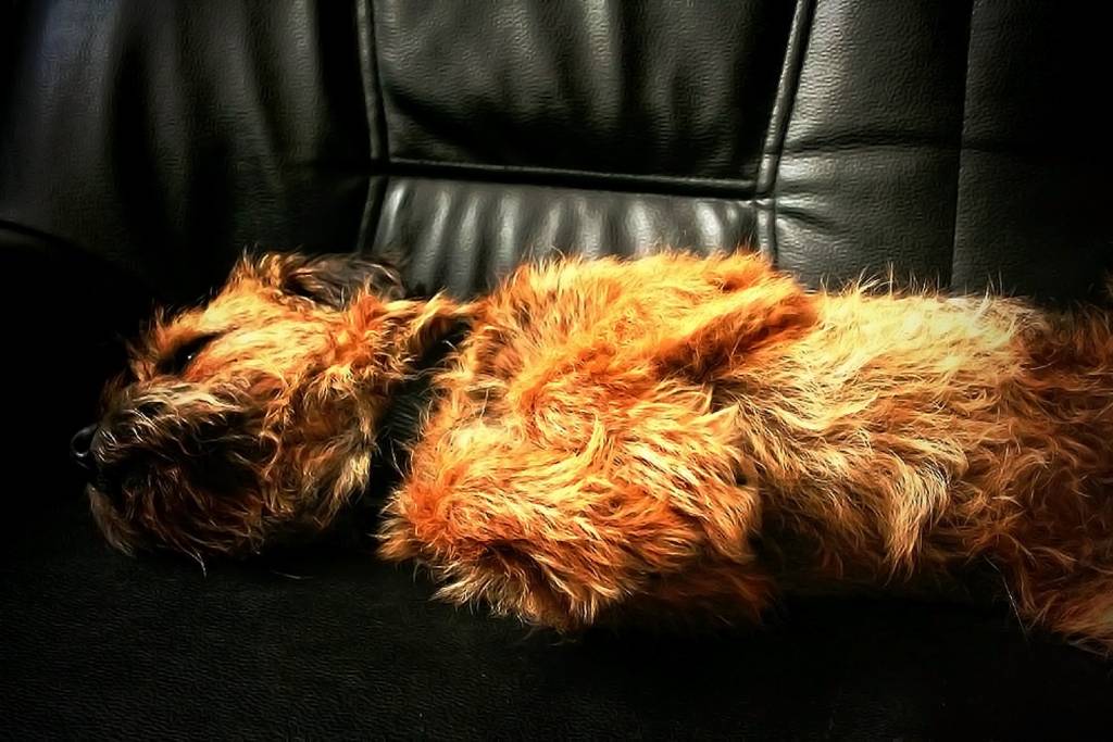 Un Border Terrier hilare pendant son sommeil