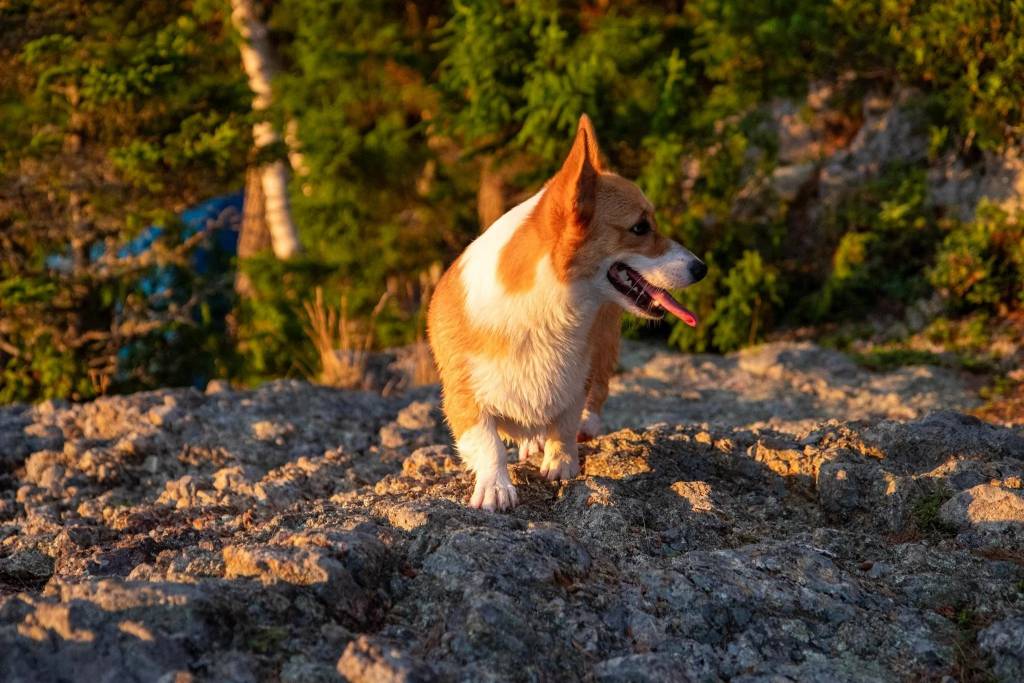 Un Borgi tirant la langue et semblant détendu
