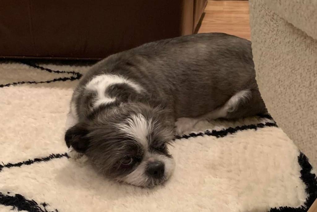 Un Boshih reposant sur une moquette dans un salon