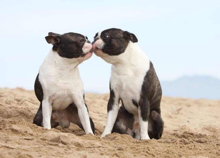 Parade amoureuse et saillie d'un couple de Boston Terrier