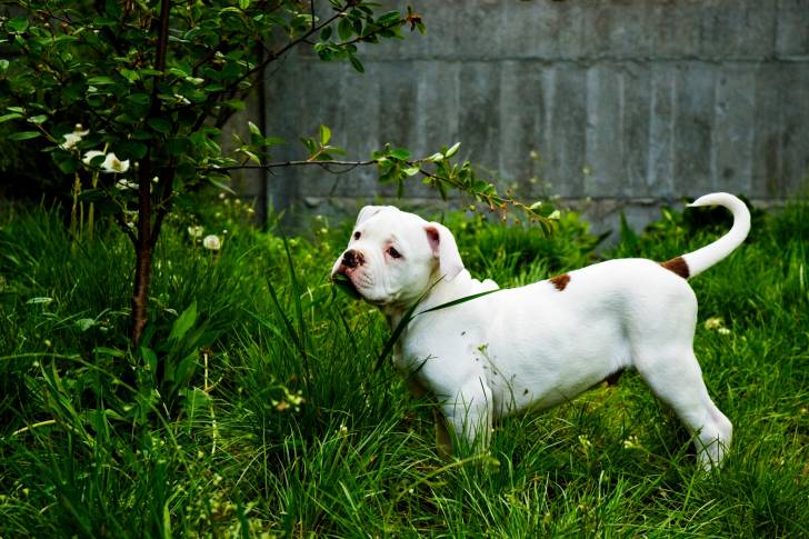 Ce bouledogue américain apprend à vivre en milieu urbain.
