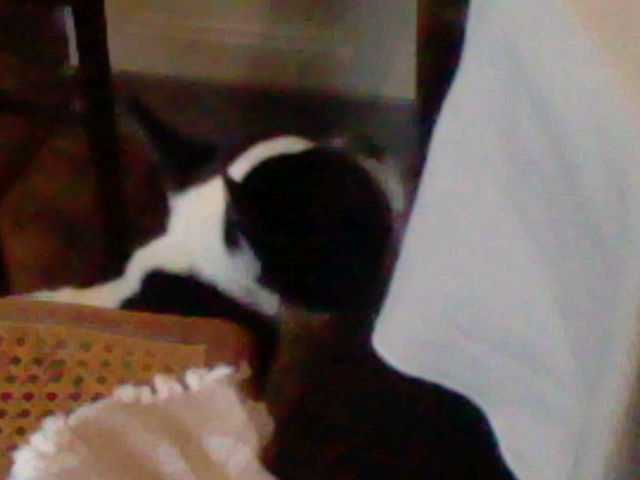 Dakota sous la table à manger .