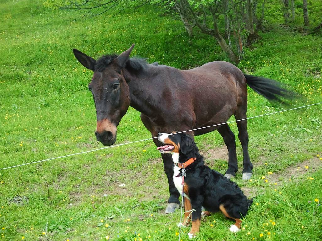Gigie, et notre voisin, Bijou, mulet entier croisé baudet du Poitou et trait (race inconnue)