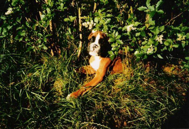 NEWTON en mai 97 (3 mois)est arrivé dans notre famille et déjà bien installé dans son jardin