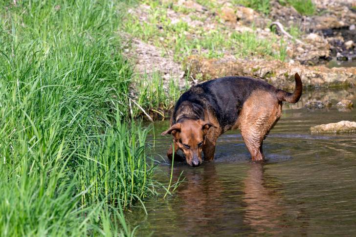 Un chien Boxer Shepherd extériorise sa joie de vivre