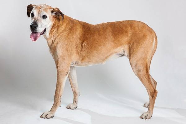 Ce chien Boxer Shepherd attend les caresses de sa maîtresse