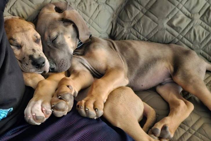 Deux Bull Daniff allongés sur un canapé et semblant dormir