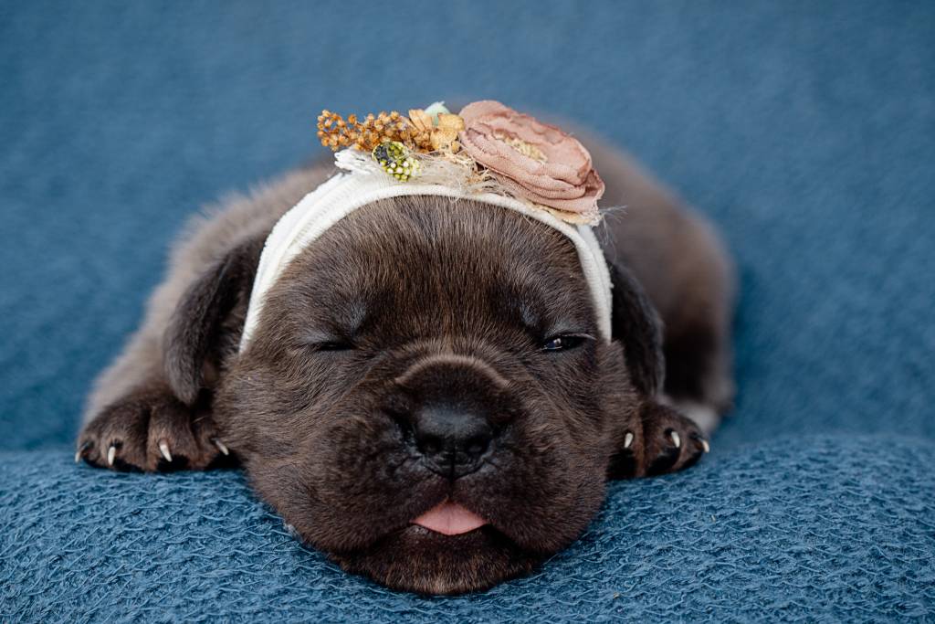 Chiot Cane Corso dormant sur un duvet bleu