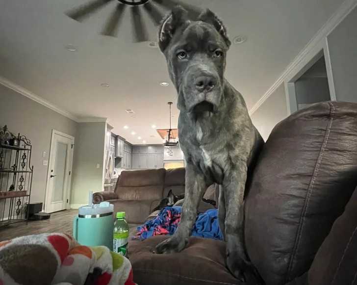 Un Cane Corso sur un canapé
