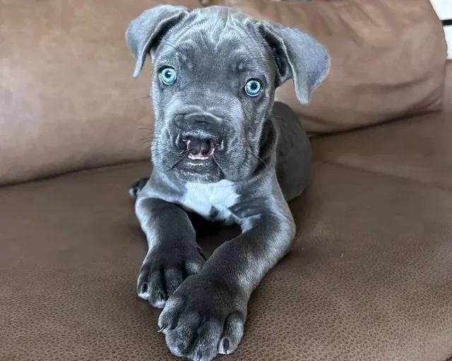 Un Cane Corso allongé sur un canapé et semblant détendu