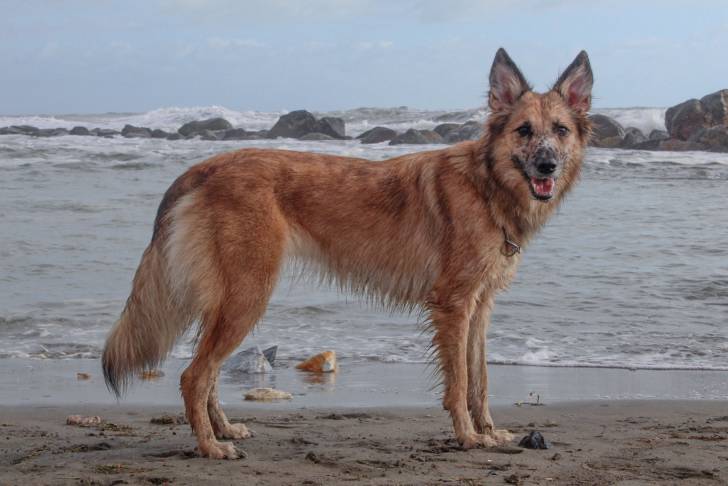 Un Cane delle Alpi Apuane sur une surface sableuse