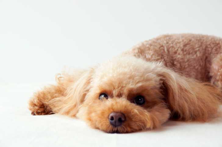 Trois chiens Caniches Nains font des longueurs dans une piscine
