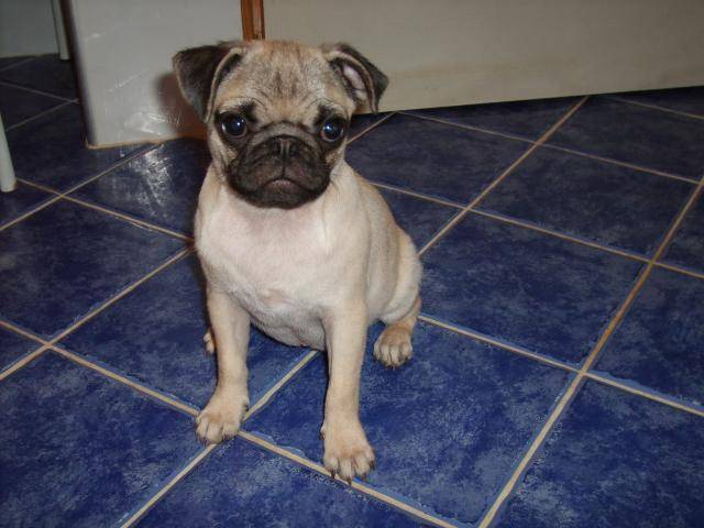 Des chiots Carlin jouent avec le pyjama d'un enfant