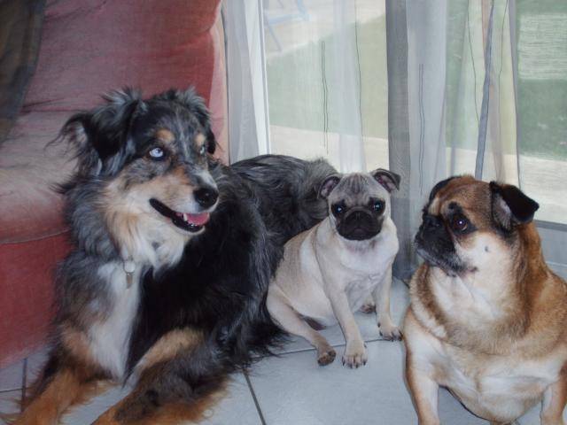 Coucou !!! c'est Banzai et Ovnie, on vous présente notre cousine Salomé.... elle est belle, non !! elle fait 35 kg de plus que nous et ben on a meme pas peur d'elle, car elle est trop sympa