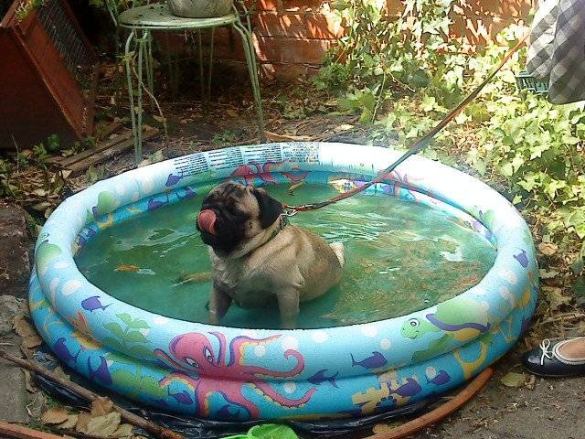 Eliot dans mon jardin qui se baigne dans la piscine