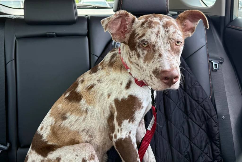 Un chien adore jouer avec un Catahoula Heeler au pelage bleu